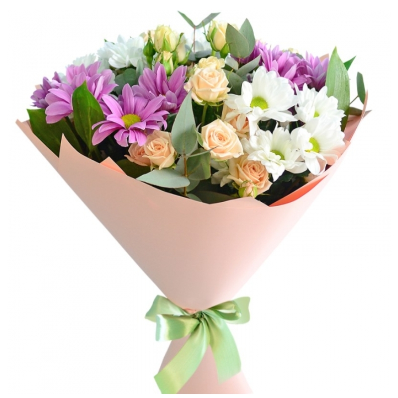 Букет из кустовых роз и хризантем "Признание в любви"